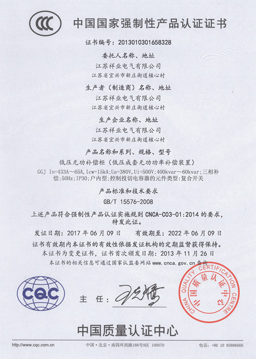 低壓柜3C證書(shū)