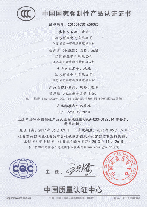 低壓柜3C證書